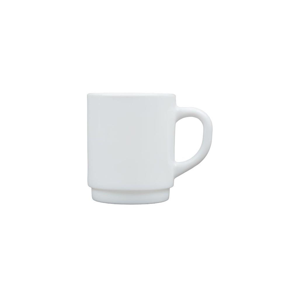 Tasse aus weißem Opalglas, Volumen 29 cl, aus der etwas hochwertigeren Restaurant-Linie, mit dickeren Wänden und etwas mehr Gewicht für ein noch edleres Gefühl.