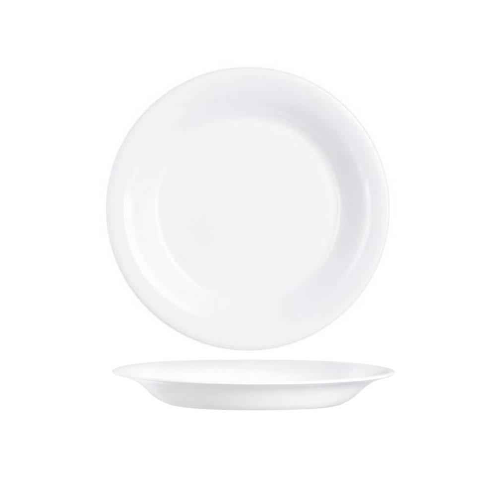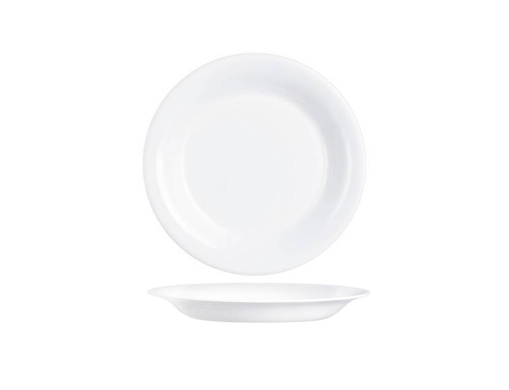 Tiefer Teller aus weißem Opalglas, Durchmesser 23 cm, 24 Stück pro Packung.