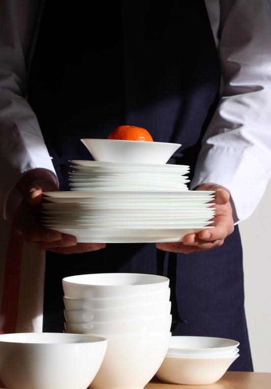 Das Produkt wird aus Opalglas in einem Verfahren hergestellt, bei dem dem Glas weiße Farbe beigemischt wird. Im Vergleich zu einem Porzellanprodukt gleicher Größe hat es eine geringere Masse und die Kanten sind weniger spröde.