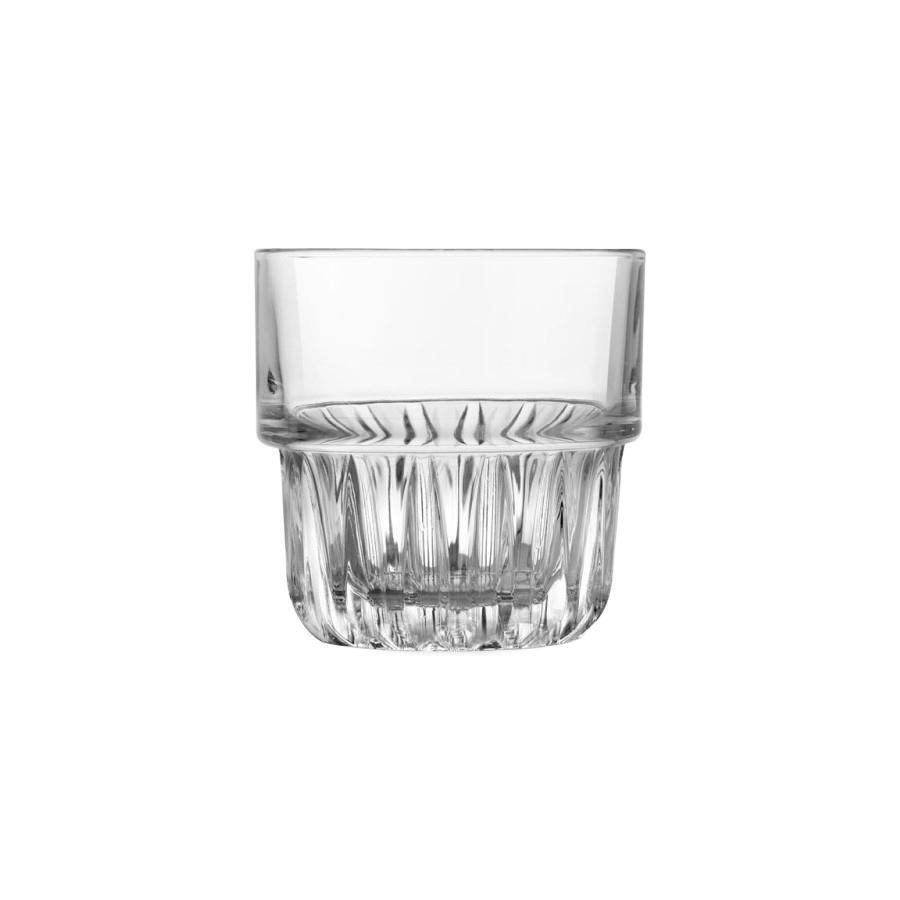 Posebno oblikovano dno kozarca omogoča, da jih brez problema nalagamo enega v drugega, pri tem pa se kozarci ne nagibajo levo ali desno.
