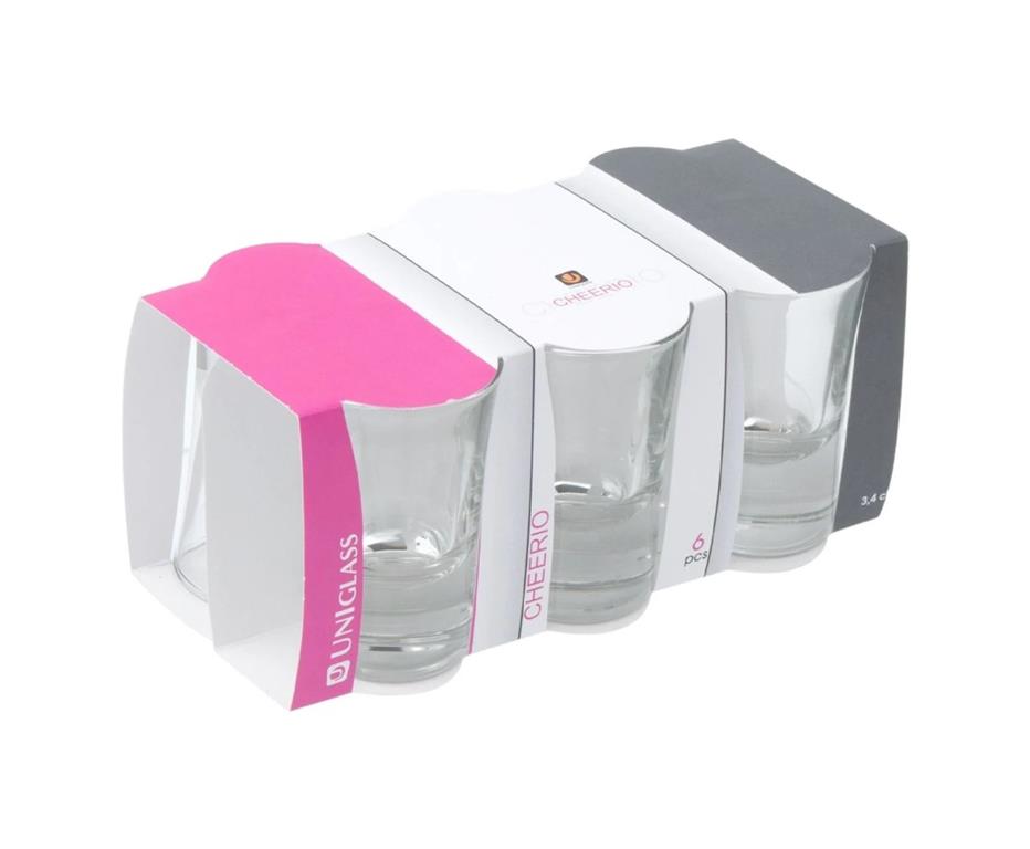 Koazrec za žganje in rakijo Cheerio, volumna 34ml. V setu je pakiranih 6 kozarcev.