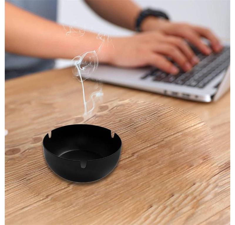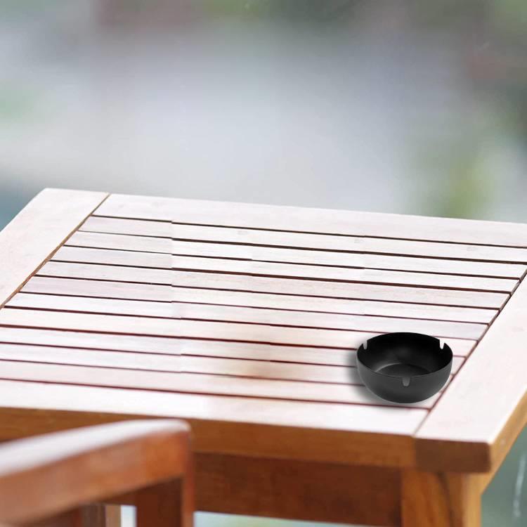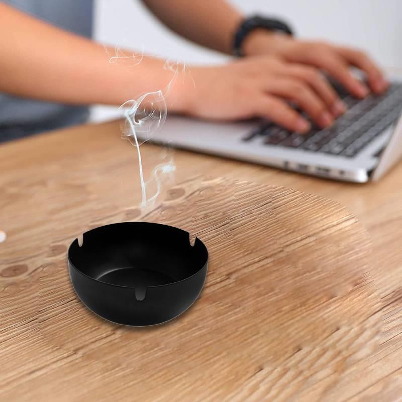 Schwarzer Aschenbecher aus Edelstahl, Durchmesser 10,5 cm.