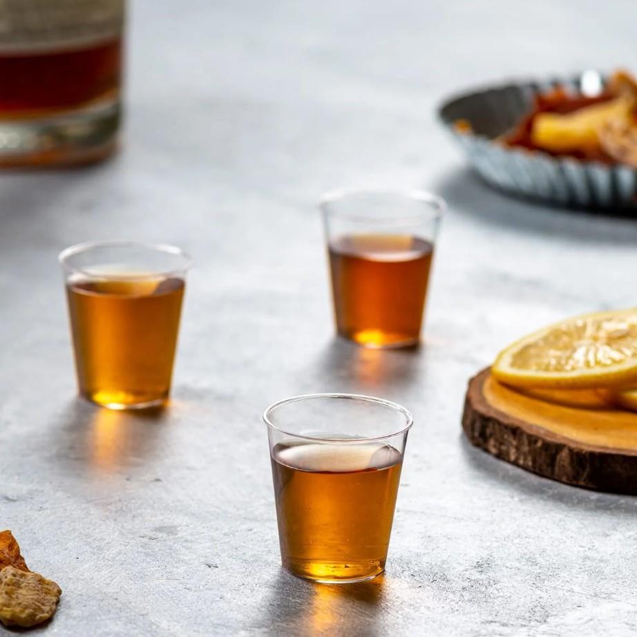 Plastični kozarci za enkratno uporabo iz trše PS plastike, bolj elegantnega izgleda. Plastični kozarci iz PS so trši, nekoliko bolj lomljivi a še vedno relativno ugodni.