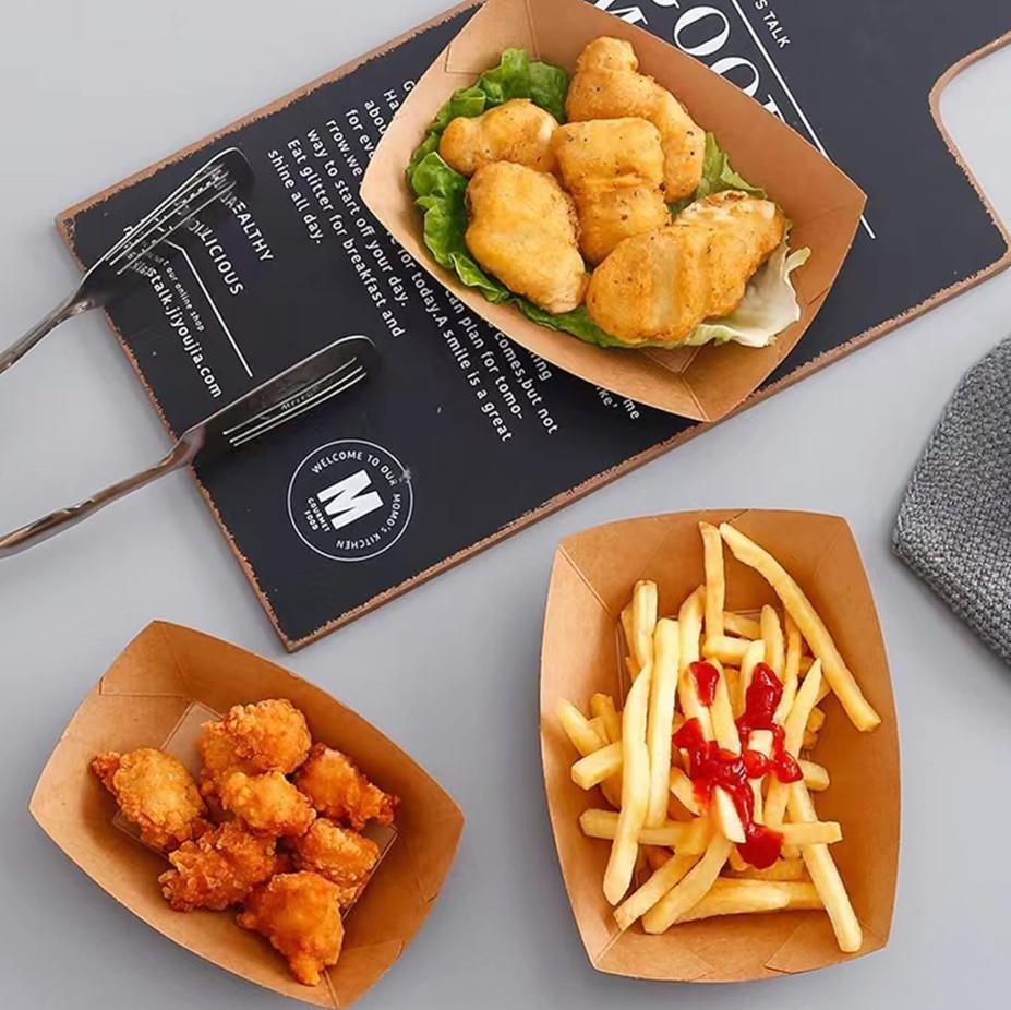 Fingerfood posodice iz kartona (kraft) predstavljajo popolno alternativo plastičnim izdelkom za enkratno uporabo. Te kartonski čolnički so primerni za strežbo manjših obrokov, burgerjev in ostalih fingerfood jedi.