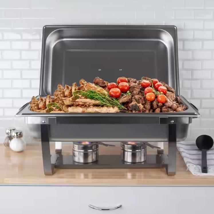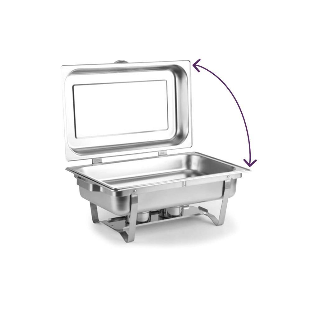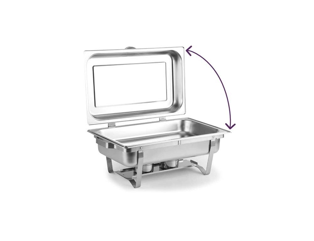 Chafing-Container für einfaches Servieren mit Deckel auf Scharnieren für einfacheres Manövrieren mit dem Deckel während des Servierens.