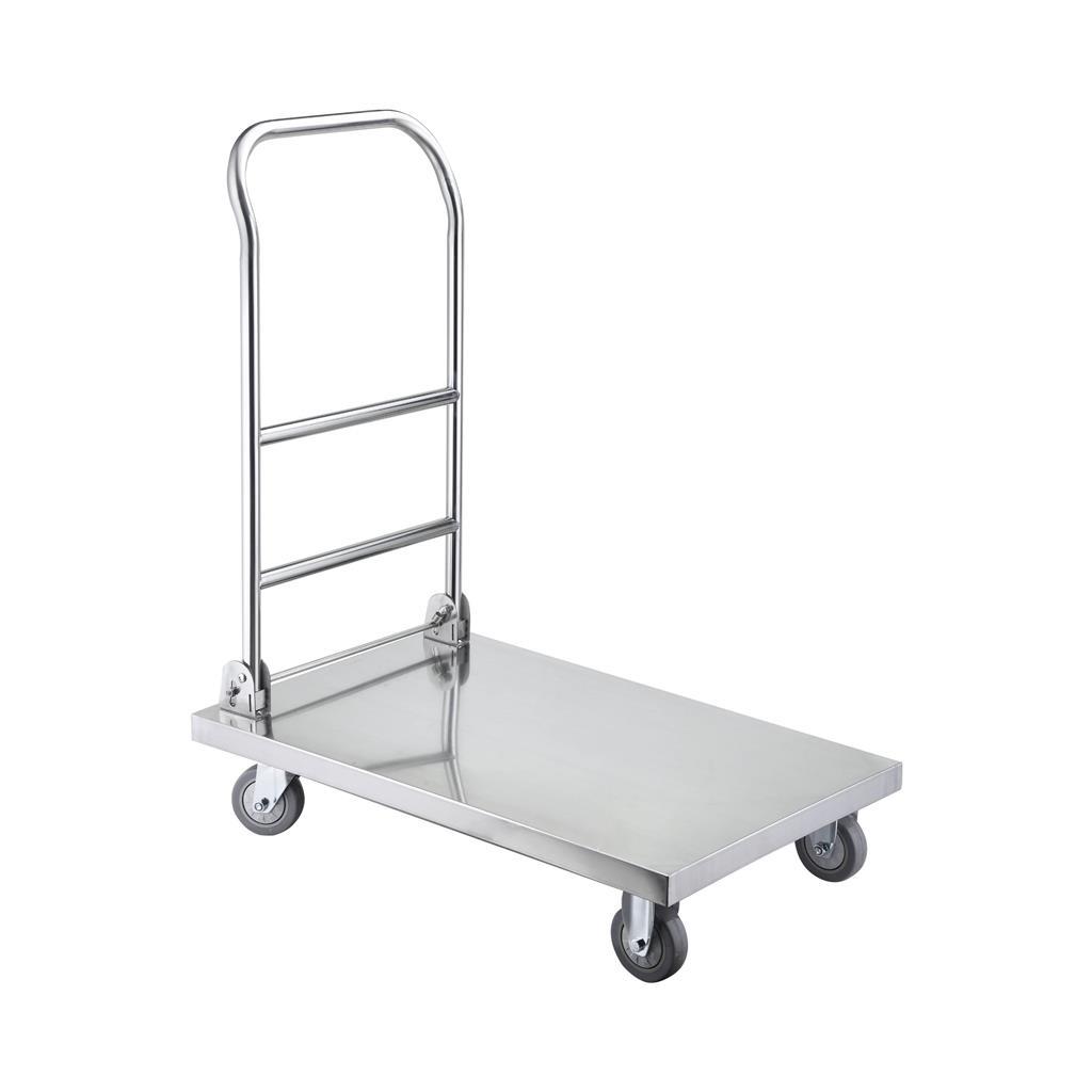 Transportni voziček s platformo dimenzij 82x52x97cm in nosilnostjo do 300kg je idealen za enostavno in varno prevažanje manjših tovorov ali paketov v restavracijah, barih, slaščičarnah, trgovinah in podobnih obratih. Trdna konstrukcija zagotavlja dolgo življenjsko dobo, ergonomski ročaj pa omogoča udobno upravljanje in boljši nadzor med uporabo. Primeren je za profesionalno kot tudi domačo rabo.