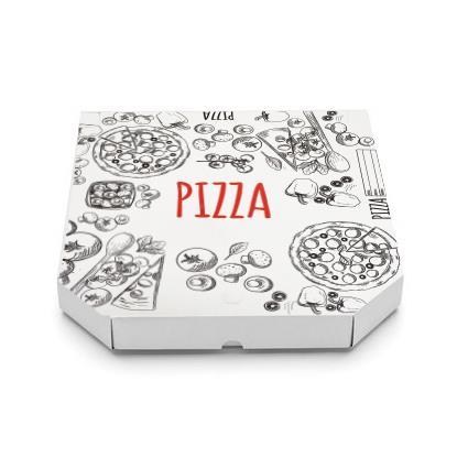 Pizza škatle s potiskom, preprosta in uporabna rešitev za dostavo pizz in podobnih pekovskih izdelkov.