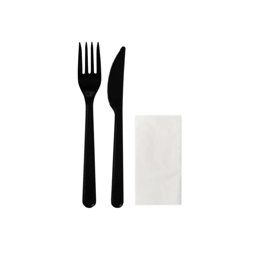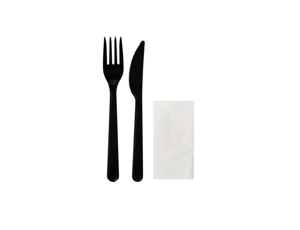 Plastičen jedilni pribor za večkratno uporabo v setu vilica, nož in servieta za lažji in bolj higienski transport in serviranje. Plastičen jedilni pribor za večkratno uporabo je lahko idelana alternativa klasičnemu plastičnemu priboru za enkratno uporabo.