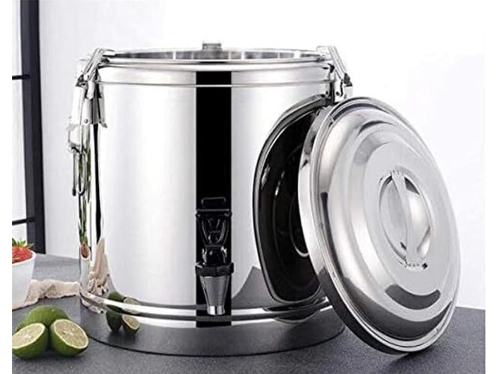 Thermosbehälter für den Transport von Flüssigkeiten und Lebensmitteln, die ihre ursprüngliche Temperatur halten müssen, mit einem Fassungsvermögen von 12 l. Der Thermosbehälter verfügt über einen integrierten Hahn mit Durchflussregler zum einfachen Entleeren des Inhalts. Der Thermosbehälter verfügt über eine Versiegelung, die das Verschütten von Flüssigkeiten verhindert. Der Thermosbehälter eignet sich für die Aufbewahrung und den Transport verschiedener flüssiger Lebensmittel, da er die Temperatur hält und eine einfache Handhabung gewährleistet.