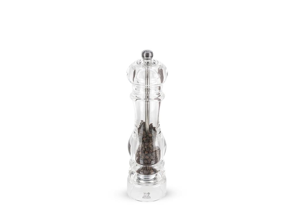 Nepremagljiva oblika, ki jo dopolnjuje še vizualni efekt transparentnosti acryla - zrnja popra v ohišju izgledajo, kot da prav nestrpno čakajo, da bodo prišla na vrsto za mletje. Mlinček za poper Nancy, je v prvi vrsti zelo prijetnega videza, hkrati pa je tudi skoraj stilska nujnost vsake mize. Vrtljiv gumb na vrhu omogoča enotavno kontrolo nad grobostjo mletja, od tistega zelo finega, do bolj grobega - za perfektno začinjeno prav vsako jed. V kuhinji je mlinček postal inštrument izbire vseh ljubiteljev okusev.