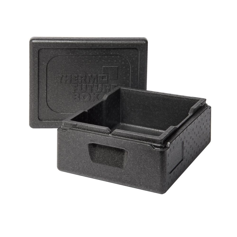 Ta termo škatla je idealna za prenos GN posod dimenzije 1/2, z notranjo dimenzijo 33x27x11 cm. Termobox ima ob straneh dvoje ugreznjenih utorov za lažji prenos in pa poseben inovativen utor v notranjosti, za lažje vstavljanje pladnjev in GN posod. Odporen material (PPE) in inovativna zaobljena zasnova vogalnih delov boxa bosta poskrbela za daljšo življenjsko dobo termoboxa. Dotična izvedba termoboxa je na voljo v treh različnih višinah.
