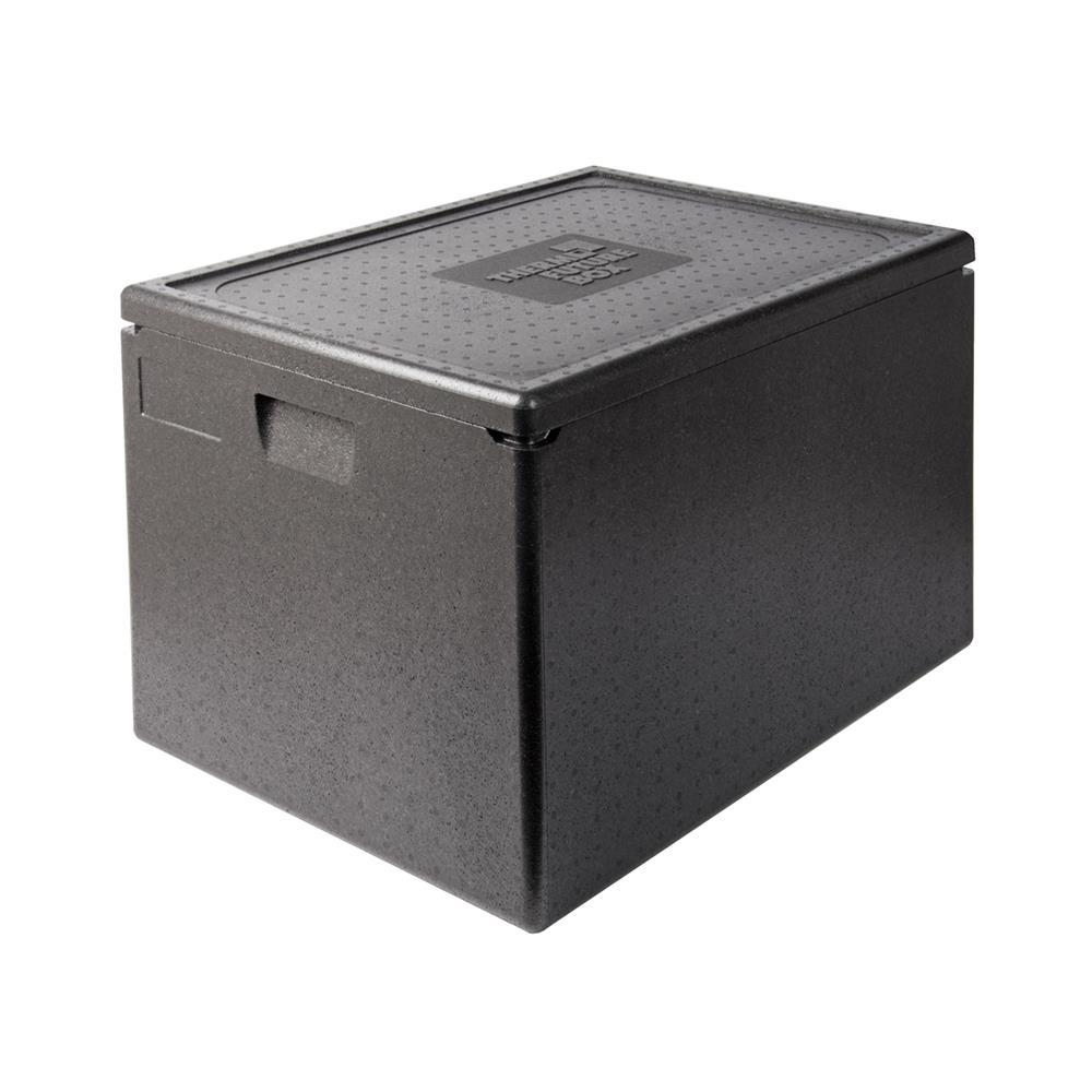 Termobox, z nadstandardno veliko notranjo dimenzijo 62x42x40 cm, je idealen za prenos kašet in višjih vložkov, večjih od standardne GN dimenzije 1/1. Termobox ima ob straneh dvoje ugreznjenih utorov za lažji prenos in pa poseben inovativen utor v notranjosti, za lažje vstavljanje pladnjev in kašet. Odporen material (PPE) in inovativna zaobljena zasnova vogalnih delov boxa bosta poskrbela za daljšo življenjsko dobo termoboxa.