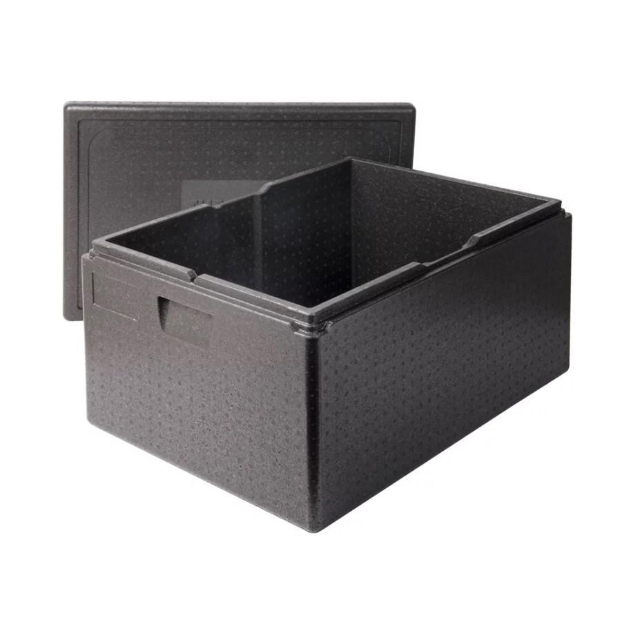 Termobox, z nadstandardno veliko notranjo dimenzijo 62x42x30 cm, je idealen za prenos kašet in višjih vložkov, večjih od standardne GN dimenzije 1/1. Termobox ima ob straneh dvoje ugreznjenih utorov za lažji prenos in pa poseben inovativen utor v notranjosti, za lažje vstavljanje pladnjev in kašet. Odporen material (PPE) in inovativna zaobljena zasnova vogalnih delov boxa bosta poskrbela za daljšo življenjsko dobo termoboxa.