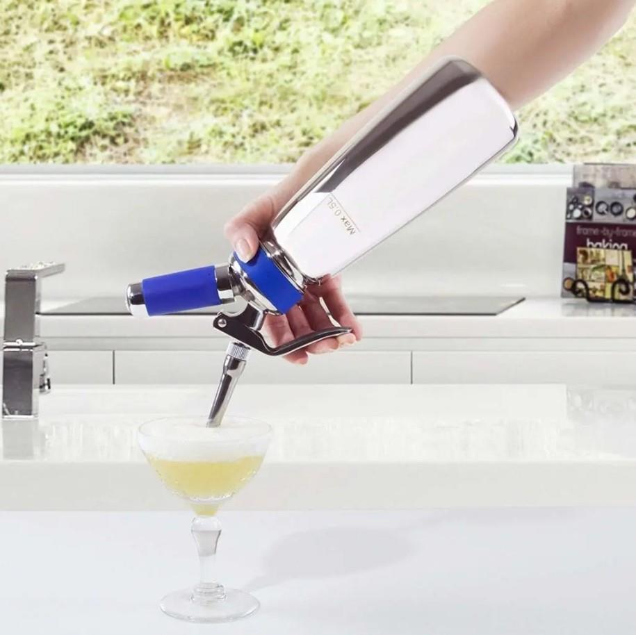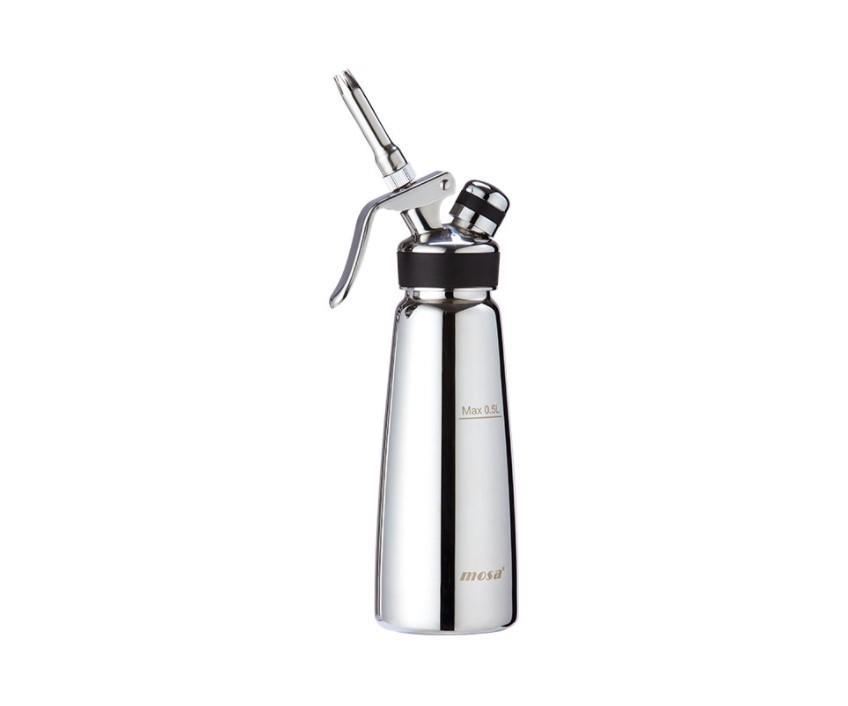 Aparat za pripravo smetane in drugih kremastih pripravkov Mosa Master Whip, narejen iz nerjavečega jekla.