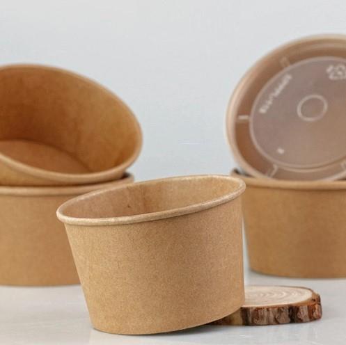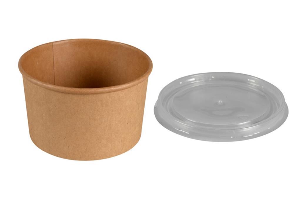 Okrogle sklede kraft bowl za juhe in tekoče jedi so narejene iz ekološko manj spornega papirja (kraft). Skupaj s pokrovom predstavljajo idealno rešitev za pakiranje solat, vročih jedi, testenin, bowl...