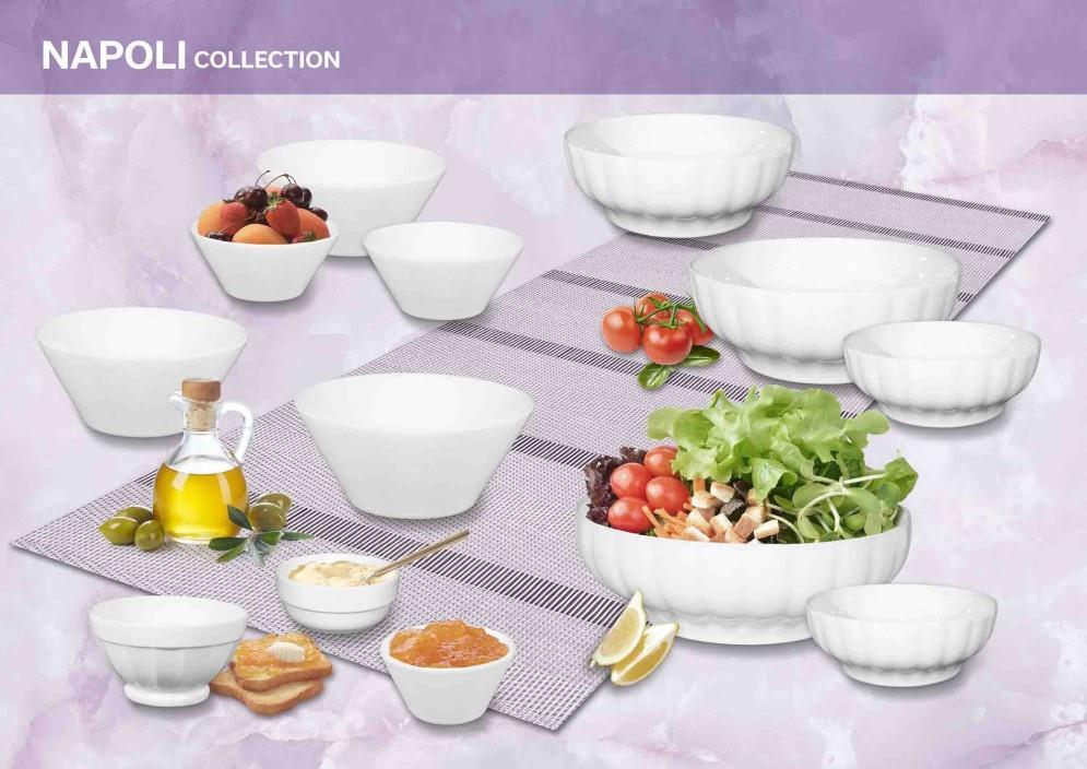 Linija Napoli bo vaš idealen spremljevalec pri postrežbi jedi, saj s svojim izredno širokim naborom obik - krožniki, pladnji, pizza krožniki, sklede, pekači... ugodi skoraj da vsaki vaši potrebi.