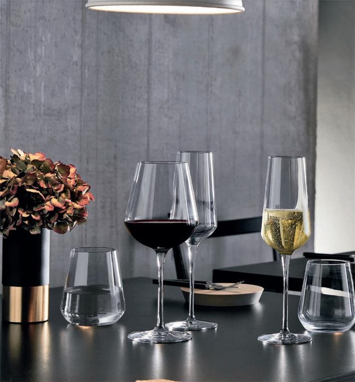 Kozarec za vino iz kolekcije InAlto Uno, oblikovalca Aldo Cibic, povzema sodobne zožene linije in jih kombinira s klasično obliko. Kozarec za vino InAlto Uno XL Wine poudarja popolno ravnovesje proporcev v kombinaciji z izjemno lahkotnostjo in popolno porazdelitvijo materiala.