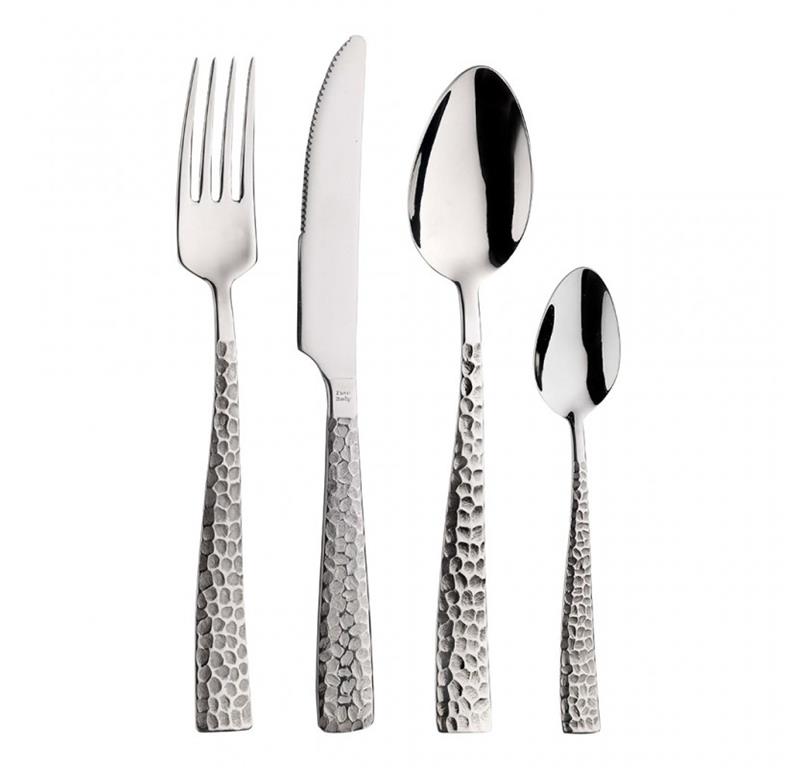 Jedilni pribor linije Palace s posebno končno obdelavo Martellato, ki ji daje edinstven izgled, proizvedena iz kvalitetnega 18/10 nerjavečega jekla (18% kroma / 10% niklja). Zaradi sestave z visoko vsebnostjo kroma ima takšen pribor večjo trdnost, vzdržljivost in odpornost na rjavenje, visoka vsebnost niklja pa mu daje izredno visok sijaj.