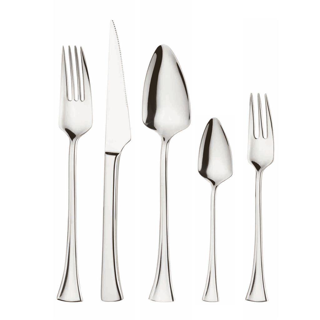 Pribor Liberty bo perfekten izbor vseh, ki si pri postrežbi želijo drugačnosti. Zaradi pri koncu razširjenega ročaja in ostrih linij, bo pribor Liberty zagotovo osrednji kos pozornosti vaše mize. Z ročaji debeline kar 3mm, pribor Liberty dosega popolno uravnoteženost in s tem bolj ergonomski položaj v roki, njegov visok sijaj pa bo poskrbel, da bo na mizi še dodatno izstopal.