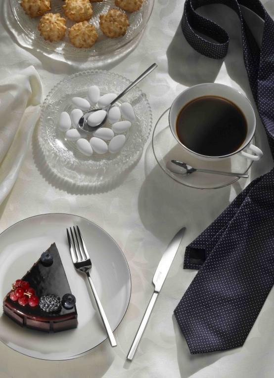 Linija jedilnega pribora Tie se ponaša s prav posebno kvadratno obliko, ki se vrača k samemu bistvu. Popolnoma uravnotežena teža in kvadratna oblika sta tisto, ki delata linijo Tie popolnoma ergonomsko in izredno elegantno.