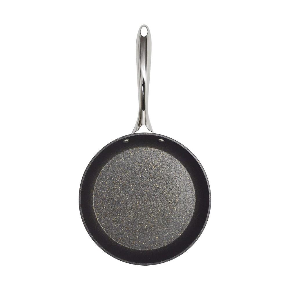 - Izjemno vzdržljiva in lahka prešana aluminijasta ponev debeline 4mm, z ojačanim izpostavljenim delom roba, debeline kar 5mm