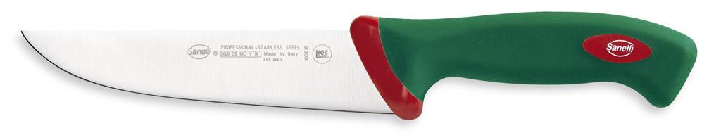 Mesarski nož iz linije Premana professional je primeren za rezanje mesa. Posebej primeren je za profesionalno rezanje. Rezilo Sanelli nožev je proizvedeno iz visokokvalitetnega X50 CR MO 14 ali X60 CR MO V 14 nerjavečega jekla, izredno visoko postavljen standard, ki zagotavlja dolgotrajno življenjsko dobo rezila. Ročaji Sanelli nožev so proizvedeni s prav posebno tehnologijo Biomaster. Gre za trajno antibakterijsko zaščito, ki deluje na osnovi srebrovih ionov, preprečuje rast in razmnoževanje bakterijam in s tem zagotavlja 24/7 higieno, hkrati pa ostaja nezaznavna za uporabnika in snovi, s katerimi prihaja v stik..