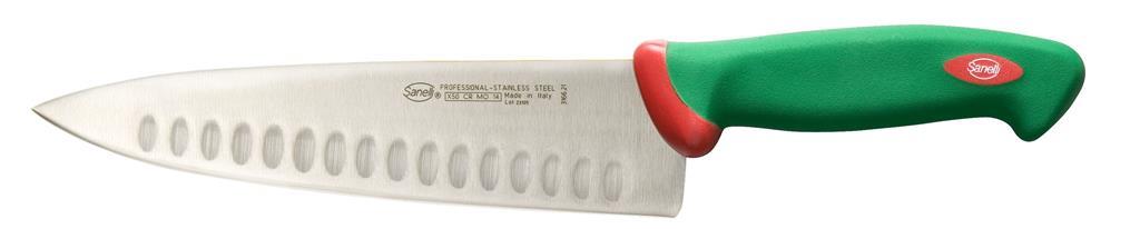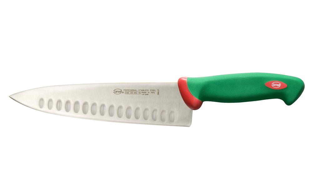 Kuhinjski nož iz linije Premana professional je primeren za rezanje mesa ter tudi zelenjave in sadja. Zaradi širšega rezila je še posebej primeren za sekljanje in profesionalno kuharsko uporabo, rezilo z rebri pa bo poskrbelo, da se nanj prime manj ostankov hrane. Rezilo Sanelli nožev je proizvedeno iz visokokvalitetnega X50 CR MO 14 ali X60 CR MO V 14 nerjavečega jekla, izredno visoko postavljen standard, ki zagotavlja dolgotrajno življenjsko dobo rezila. Ročaji Sanelli nožev so proizvedeni s prav posebno tehnologijo Biomaster. Gre za trajno antibakterijsko zaščito, ki deluje na osnovi srebrovih ionov, preprečuje rast in razmnoževanje bakterijam in s tem zagotavlja 24/7 higieno, hkrati pa ostaja nezaznavna za uporabnika in snovi, s katerimi prihaja v stik..