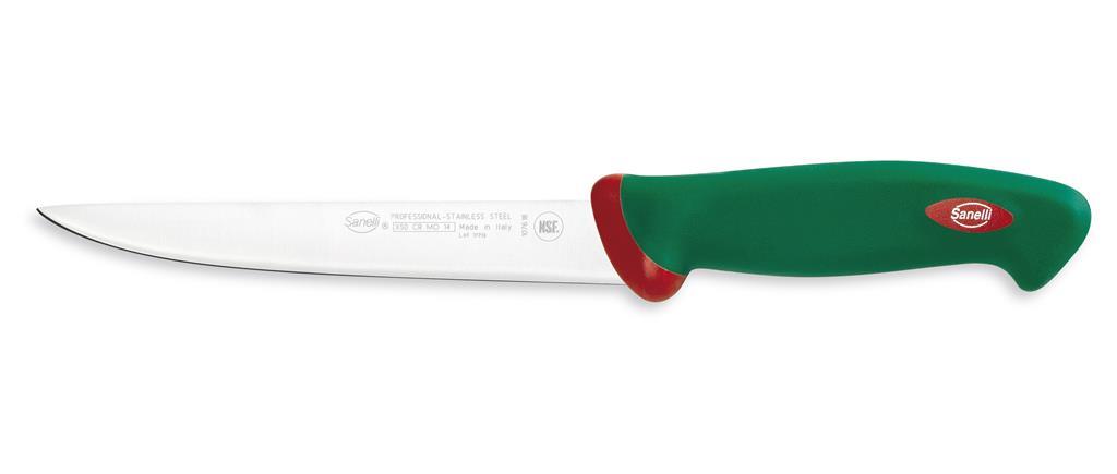 Nož za filiranje iz linije Premana professional s posebnim, gibljivim rezilom je primeren za filiranje majhnih in srednje velikih rib. Rezilo Sanelli nožev je proizvedeno iz visokokvalitetnega X50 CR MO 14 ali X60 CR MO V 14 nerjavečega jekla, izredno visoko postavljen standard, ki zagotavlja dolgotrajno življenjsko dobo rezila. Ročaji Sanelli nožev so proizvedeni s prav posebno tehnologijo Biomaster. Gre za trajno antibakterijsko zaščito, ki deluje na osnovi srebrovih ionov, preprečuje rast in razmnoževanje bakterijam in s tem zagotavlja 24/7 higieno, hkrati pa ostaja nezaznavna za uporabnika in snovi, s katerimi prihaja v stik..