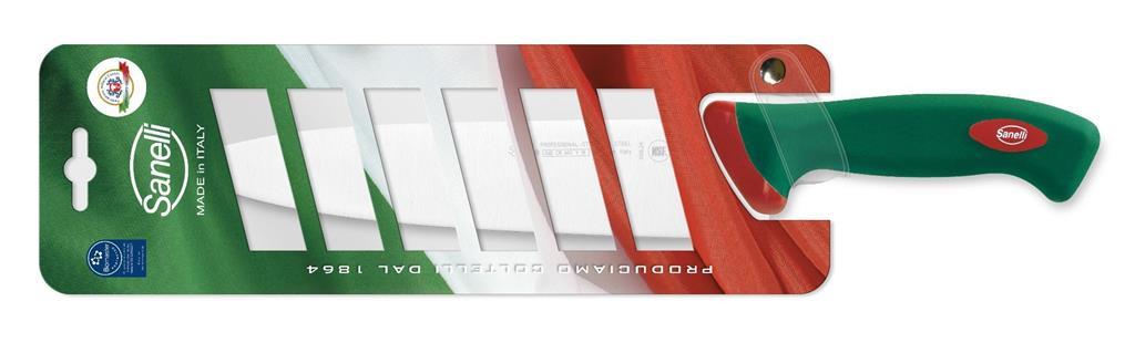 Kuhinjski nož iz linije Premana professional je primeren za rezanje zelenjave, sadja in tudi mesa ter rib. Zaradi širšega rezila je še posebej primeren za sekljanje in profesionalno kuharsko uporabo. Rezilo Sanelli nožev je proizvedeno iz visokokvalitetnega X50 CR MO 14 ali X60 CR MO V 14 nerjavečega jekla, izredno visoko postavljen standard, ki zagotavlja dolgotrajno življenjsko dobo rezila. Ročaji Sanelli nožev so proizvedeni s prav posebno tehnologijo Biomaster. Gre za trajno antibakterijsko zaščito, ki deluje na osnovi srebrovih ionov, preprečuje rast in razmnoževanje bakterijam in s tem zagotavlja 24/7 higieno, hkrati pa ostaja nezaznavna za uporabnika in snovi, s katerimi prihaja v stik..