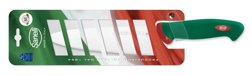 Kuhinjski nož iz linije Premana professional je primeren za rezanje zelenjave, sadja in tudi mesa ter rib. Zaradi širšega rezila je še posebej primeren za sekljanje in profesionalno kuharsko uporabo. Rezilo Sanelli nožev je proizvedeno iz visokokvalitetnega X50 CR MO 14 ali X60 CR MO V 14 nerjavečega jekla, izredno visoko postavljen standard, ki zagotavlja dolgotrajno življenjsko dobo rezila. Ročaji Sanelli nožev so proizvedeni s prav posebno tehnologijo Biomaster. Gre za trajno antibakterijsko zaščito, ki deluje na osnovi srebrovih ionov, preprečuje rast in razmnoževanje bakterijam in s tem zagotavlja 24/7 higieno, hkrati pa ostaja nezaznavna za uporabnika in snovi, s katerimi prihaja v stik..