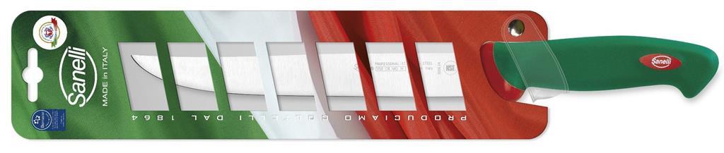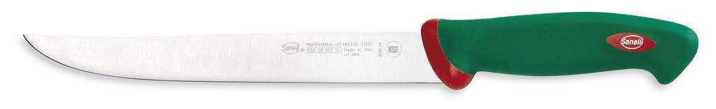 Nož za rezanje pečenega in kuhanega mesa iz linije Premana professional s posebnim, srednje-togim rezilom je še posebej primeren za rezanje zrezkov, filejev in večjih kosev pečenega ali kuhanega mesa. Rezilo Sanelli nožev je proizvedeno iz visokokvalitetnega X50 CR MO 14 ali X60 CR MO V 14 nerjavečega jekla, izredno visoko postavljen standard, ki zagotavlja dolgotrajno življenjsko dobo rezila. Ročaji Sanelli nožev so proizvedeni s prav posebno tehnologijo Biomaster. Gre za trajno antibakterijsko zaščito, ki deluje na osnovi srebrovih ionov, preprečuje rast in razmnoževanje bakterijam in s tem zagotavlja 24/7 higieno, hkrati pa ostaja nezaznavna za uporabnika in snovi, s katerimi prihaja v stik..