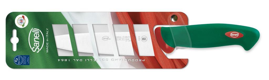 Kuhinjski nož iz linije Premana professional je primeren za rezanje mesa, zelenjave, sadja in rib. Posebej primeren je za rofesionalno kuharsko uporabo. Rezilo Sanelli nožev je proizvedeno iz visokokvalitetnega X50 CR MO 14 ali X60 CR MO V 14 nerjavečega jekla, izredno visoko postavljen standard, ki zagotavlja dolgotrajno življenjsko dobo rezila. Ročaji Sanelli nožev so proizvedeni s prav posebno tehnologijo Biomaster. Gre za trajno antibakterijsko zaščito, ki deluje na osnovi srebrovih ionov, preprečuje rast in razmnoževanje bakterijam in s tem zagotavlja 24/7 higieno, hkrati pa ostaja nezaznavna za uporabnika in snovi, s katerimi prihaja v stik..