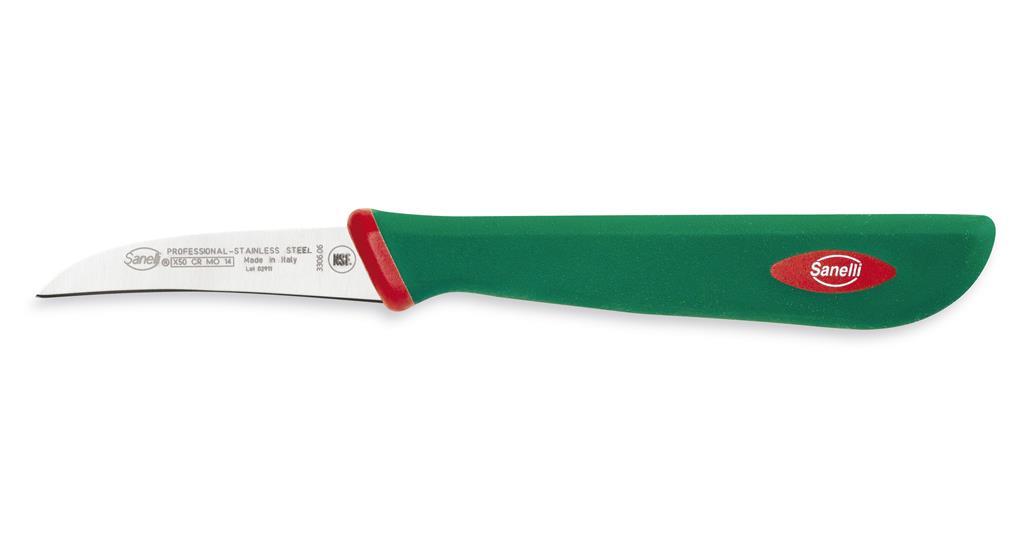 Nož za zelenjavo iz linije Premana professional je primeren za rezanje in lupljenje zelenjave in sadja. Rezilo Sanelli nožev je proizvedeno iz visokokvalitetnega X50 CR MO 14 ali X60 CR MO V 14 nerjavečega jekla, izredno visoko postavljen standard, ki zagotavlja dolgotrajno življenjsko dobo rezila. Ročaji Sanelli nožev so proizvedeni s prav posebno tehnologijo Biomaster. Gre za trajno antibakterijsko zaščito, ki deluje na osnovi srebrovih ionov, preprečuje rast in razmnoževanje bakterijam in s tem zagotavlja 24/7 higieno, hkrati pa ostaja nezaznavna za uporabnika in snovi, s katerimi prihaja v stik..