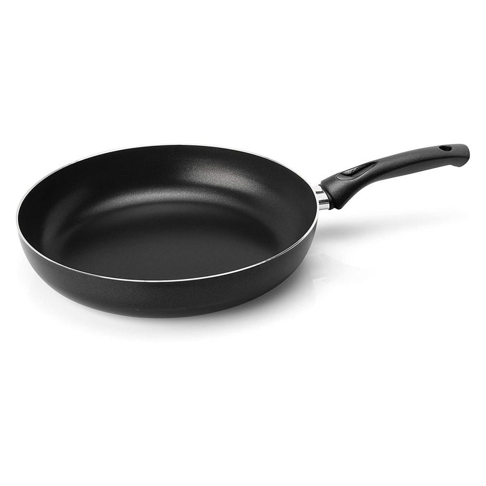 Aluminij ponev večje globine (6,5cm) in debeline stene 2.2mm ter ergonomskim plastičnim ročajem, s premazom proti prijemanju.