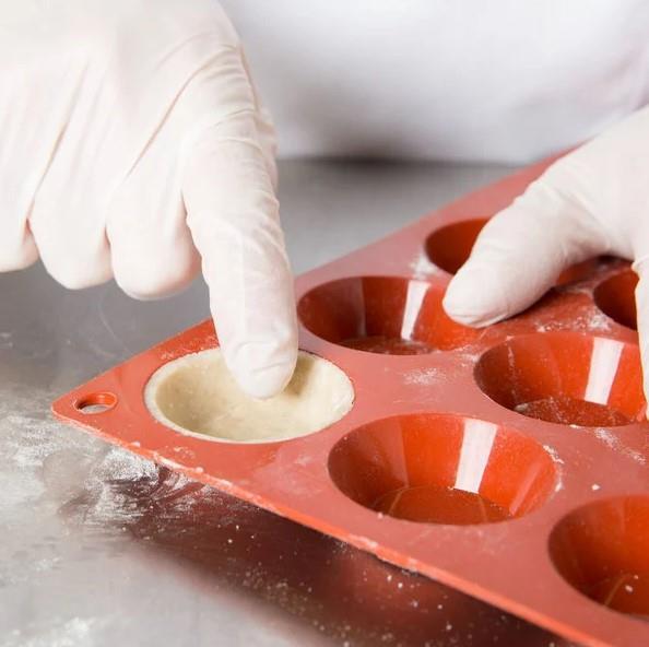 Silikonski model in pekač tartlet, dimenzije 30x18cm, s 15 vtisi stožičaste oblike dimenzije 50x15mm, ter volumna 20ml.