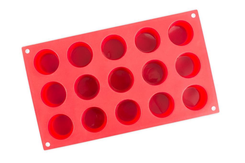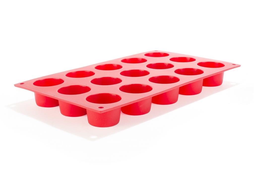 Silikonski model in pekač ptifor, dimenzije 30x18cm, s 15 vtisi cilindrične oblike dimenzije 40x20mm, ter volumna 22ml.