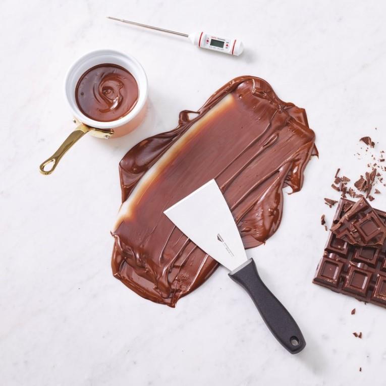 Špohtel oziroma lopatka za čiščenje in obračanje, premera 8cm, narejena iz kvalitetnega nerjavečega jekla, z ergonomskim ročajem iz polipropilena.