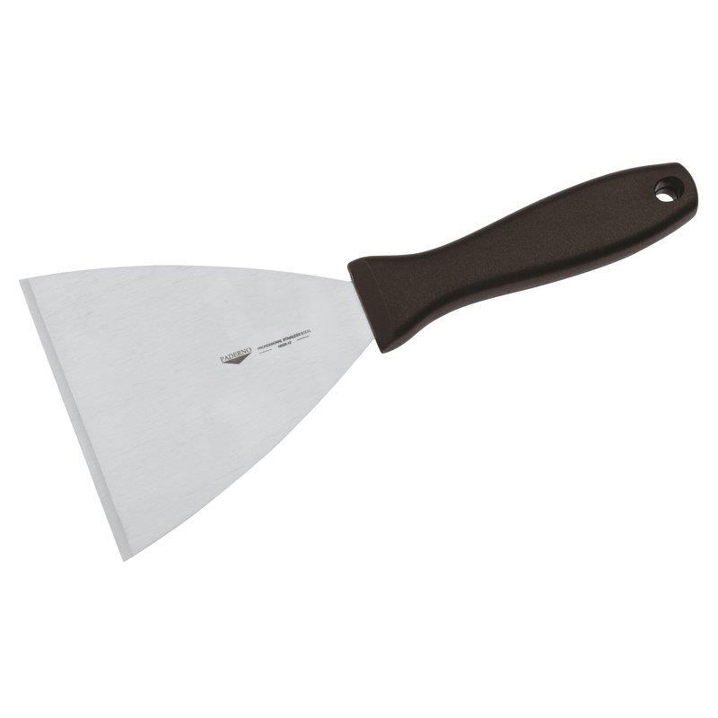 Špohtel oziroma lopatka za čiščenje in obračanje, premera 12cm, narejena iz kvalitetnega nerjavečega jekla, z ergonomskim ročajem iz polipropilena.