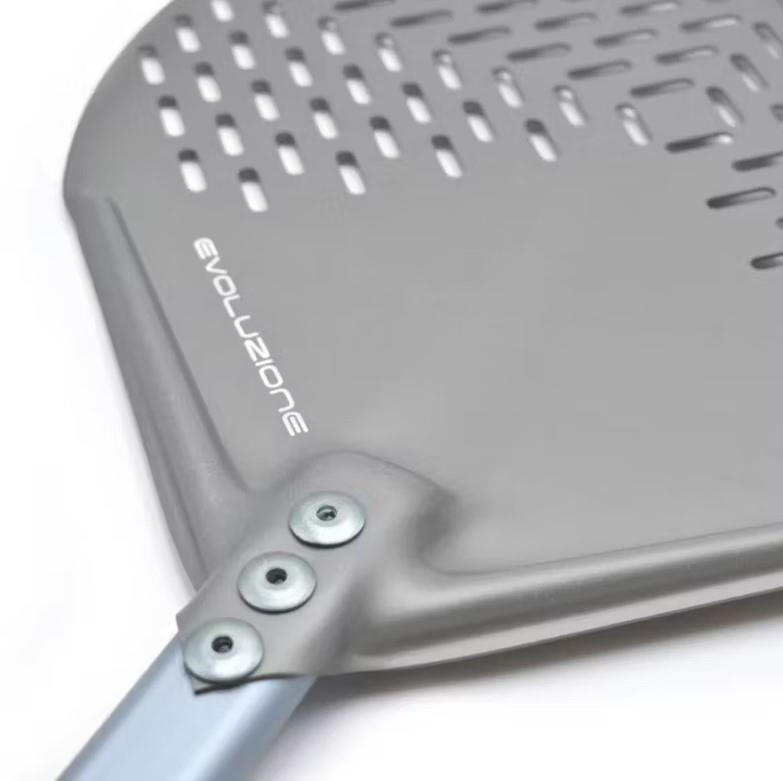 Linija Evoluzione prinaša revolucijo v svet loparjev za pizzo. Najbolj očitna prednost tega oparja je drugačna razporeditev lukenj, ki sedaj poteka namesto v vzolžnih linijah, v diagonalnih. Učinek ni samo estetski, pač pa tudi funkcionalni, saj takšna postavitev lukenj bolj optimalno strga moko z dna testa, omogoča pa tudi bolj optimalno drsenje testa po loparju. Evoluzione lopar je obedlan s tehniko S.H.A (Special Hard Anodizing), ki osnovi iz aluminija omogoča veliko večjo odpornost na vročino (3x večja kot pri običajni anodizaciji), udarce in abrazijo, povečuje njeno gladkost in zagotavlja njeno vzdržljivost. Ročaj je na lopar dodatno pritrjen s tremi zakovicami - posebna tehnologija ki si jo je Gi Metal sposodil iz letalske industrije, predstavlja optimalno razmerje med vzdržljivostjo in stailnostjo, ob ohranjanju primerne flexibilnosti.