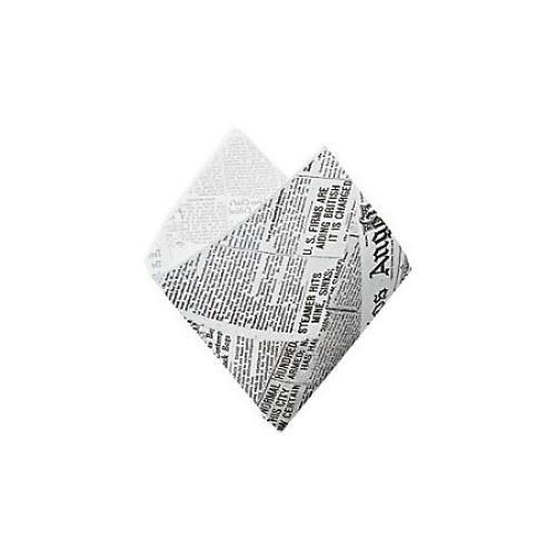 Burger vrečke iz maščobo odbojnega papirja, dimenzije 17x18cm. Za lažji prenos burgerjev, sendvičev ter drugih podobno velikih jedi, s potiskom časopisa.