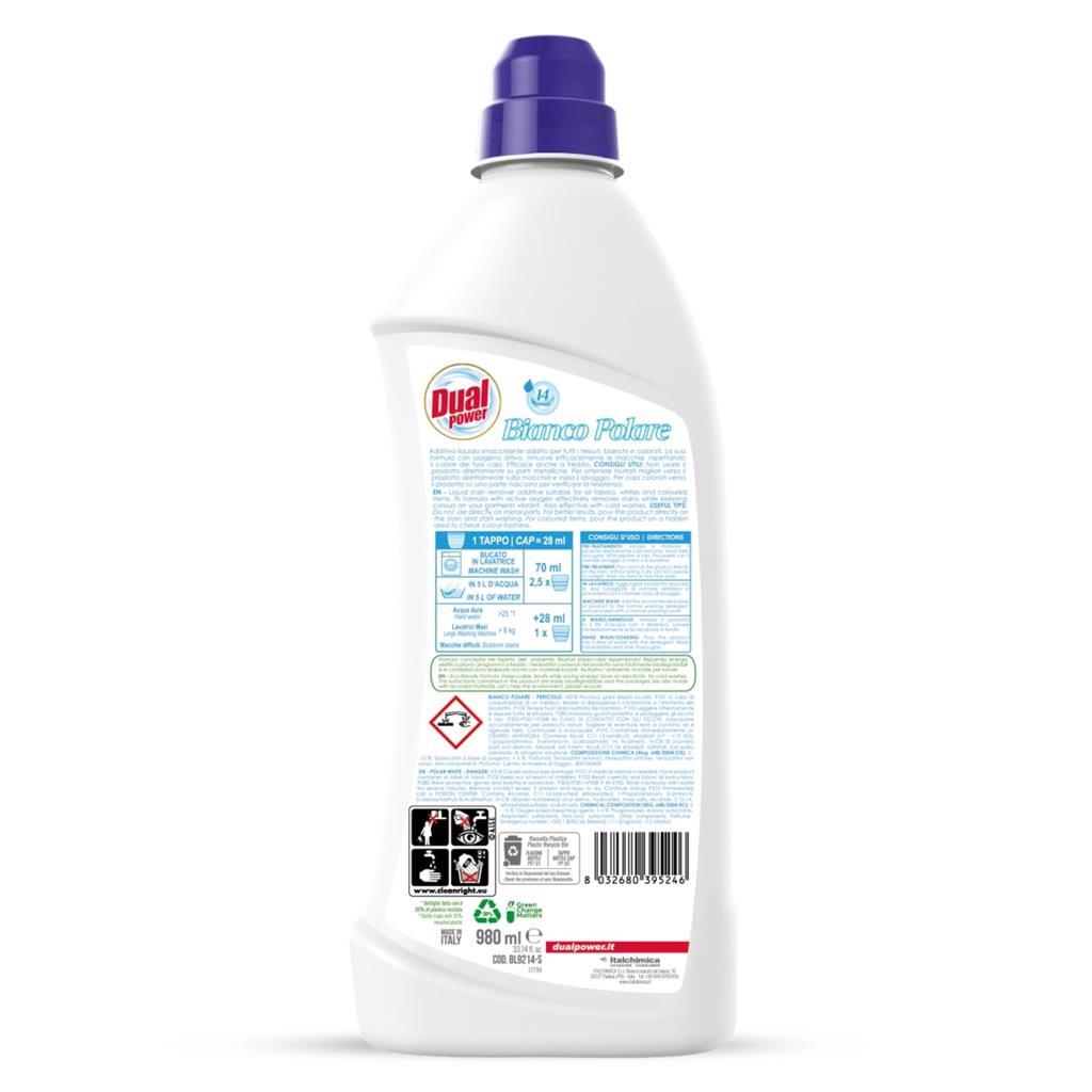 Flüssiges Bleichmittel für weiße und bunte Kleidung mit Aktivsauerstoff. Entfernt Flecken und verhilft weißer und gelber Kleidung zu strahlendem Weiß, während es gleichzeitig den Stoff schont.