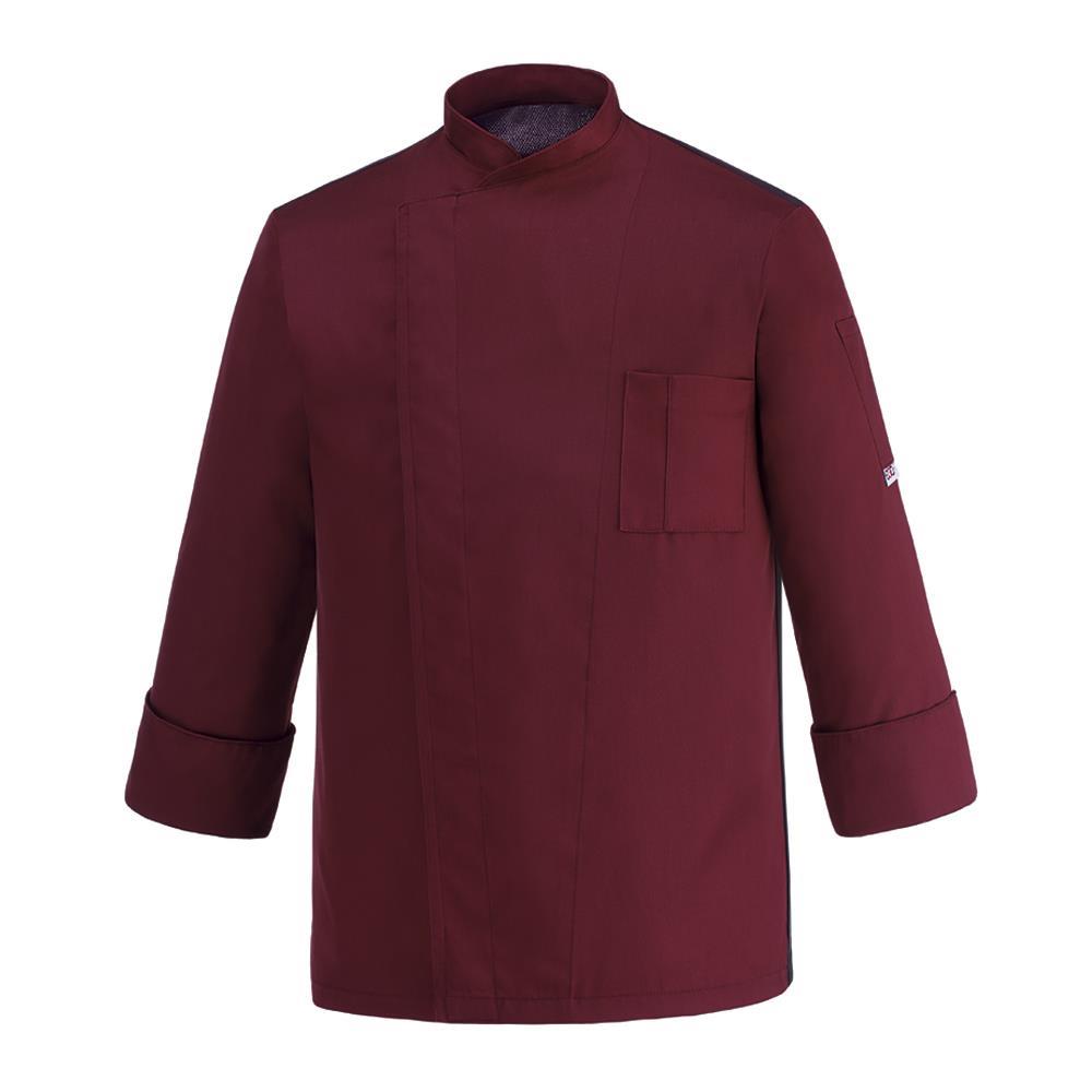 Kuharski jopič linije Ottavio z dolgimi rokavi v bordo barvi, z gumbi na pritisk za hitrejše zapenjanje in odpenjanje ter inovativno tehnologijo Air plus za ohranjanje hladnejše hrbtne strani. Linija Ottavio je proizvedena iz novega, inovativnega materiala, 100% Micro-fibra, ki je enostavna za vzdrževanje in prijetna ter lahkotna za nošenje.