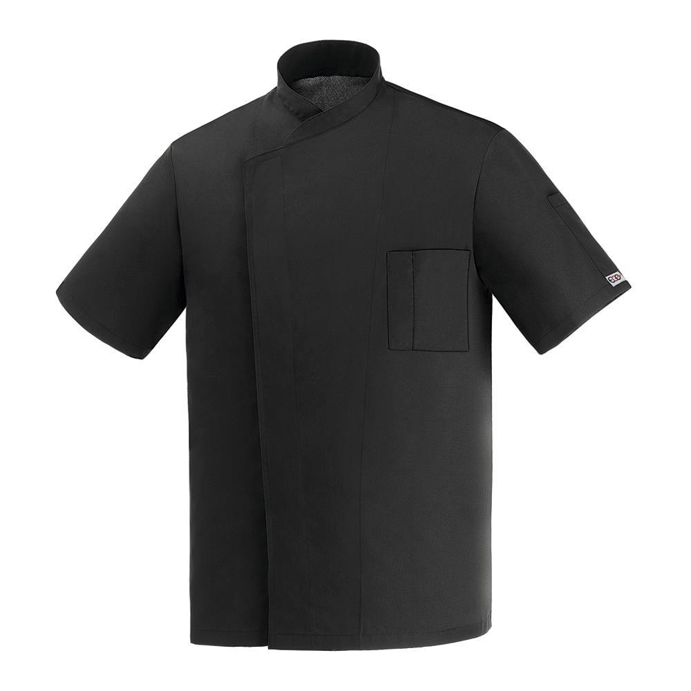 Kuharski jopič linije Ottavio s kratkimi rokavi v črni barvi z gumbi na pritisk za hitrejše zapenjanje in odpenjanje ter inovativno tehnologijo Air plus za ohranjanje hladnejše hrbtne strani. Linija Ottavio je proizvedena iz novega, inovativnega materiala, 100% Micro-fibra, ki je enostavna za vzdrževanje in prijetna ter lahkotna za nošenje.