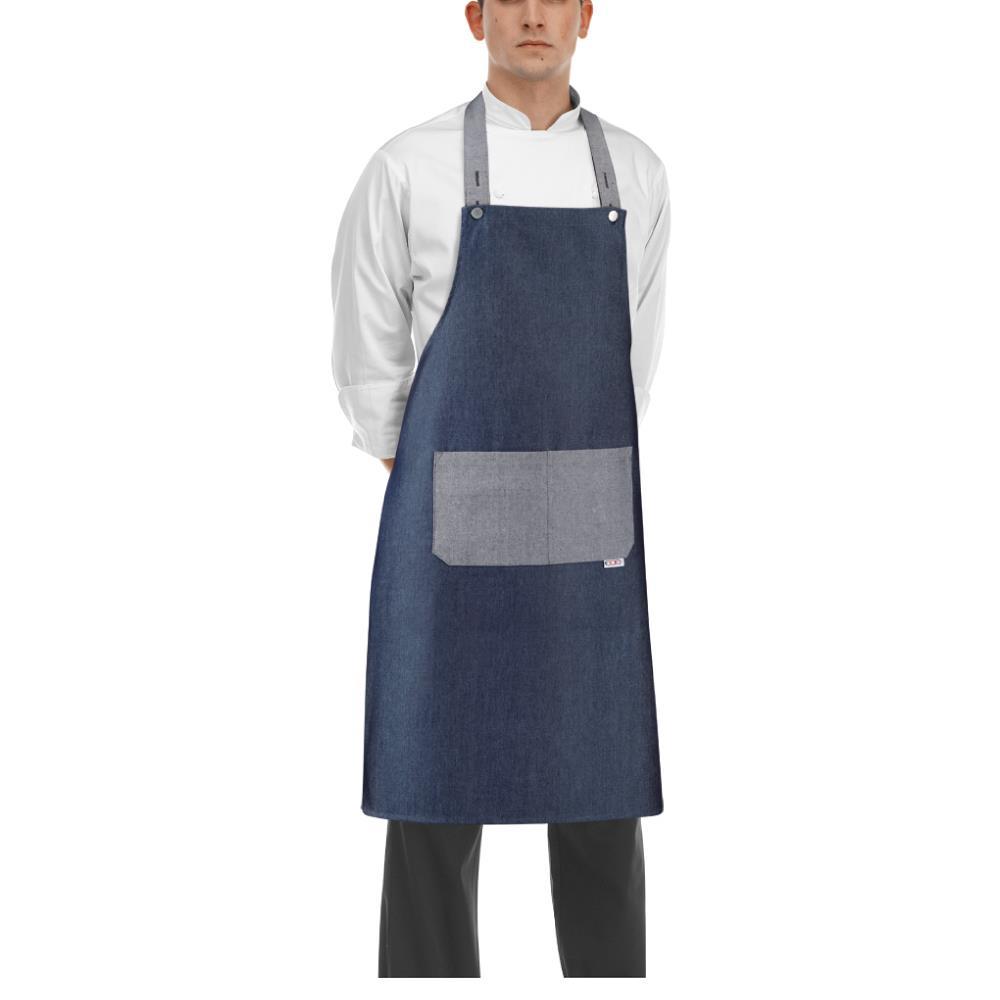 Jeans predpasnik z žepom, primeren za kuhanje in peko - pripravo jedi.