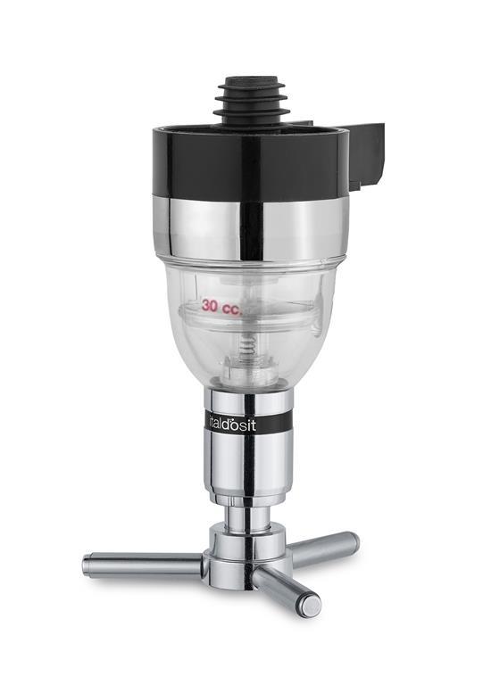 Dozator za žgane pijače, za uporabo z namenskim nosilcem za flašo je idealen za natančno odmerjanje pri točenju alkoholnih pijač. Za potrebe visokega obrata alkoholnih pijač, kjer je hitrost postrežbe na prvem mestu. Z nastavkom v črni barvi.