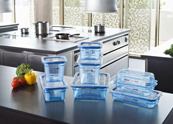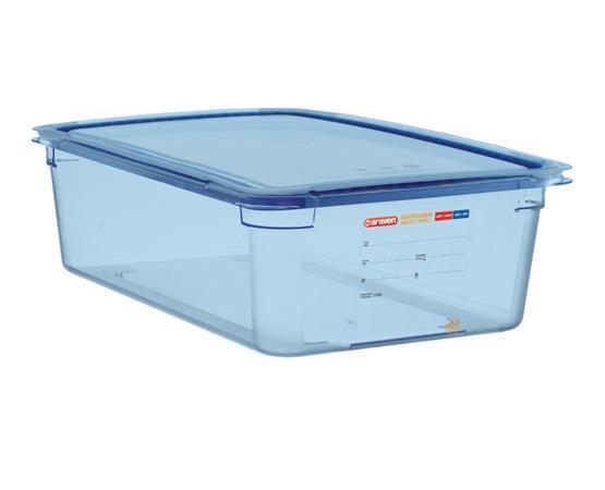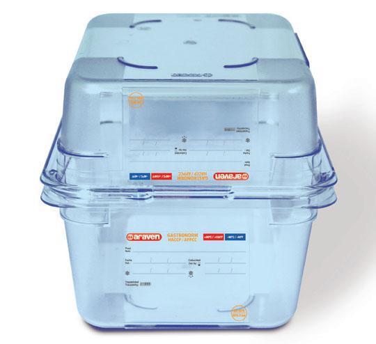 Mit den Deckeln können die geschlossenen Vorratsbehälter sicher gestapelt und nach Gebrauch dank der Polypropylen-(PP)-Konstruktion der Lebensmittelbehälter problemlos in der Spülmaschine gereinigt werden. Der Temperaturbereich für die Verwendung von Lebensmittelbehältern reicht von -40 °C bis +80 °C.