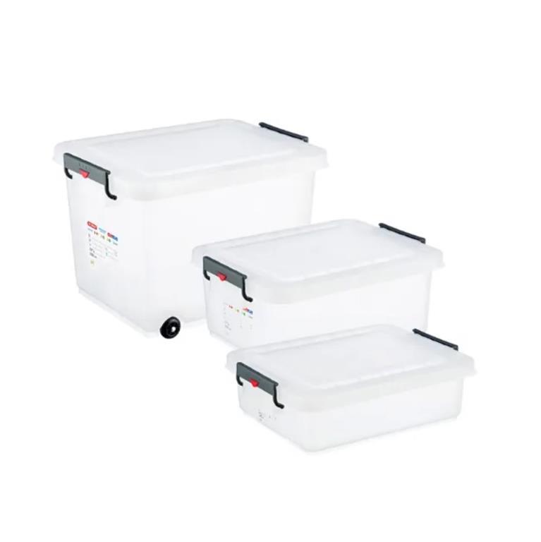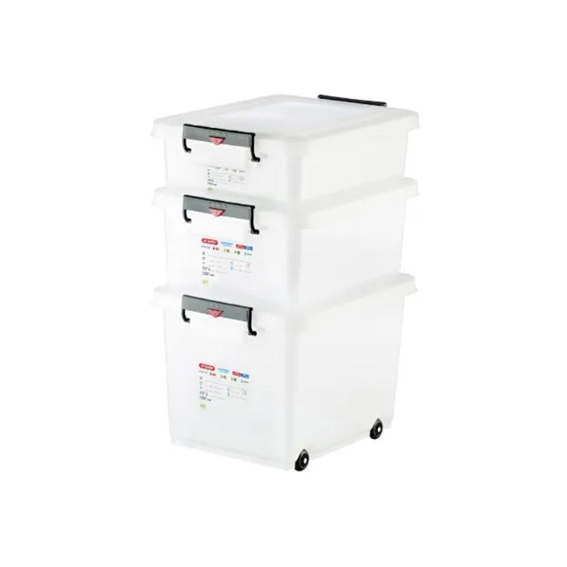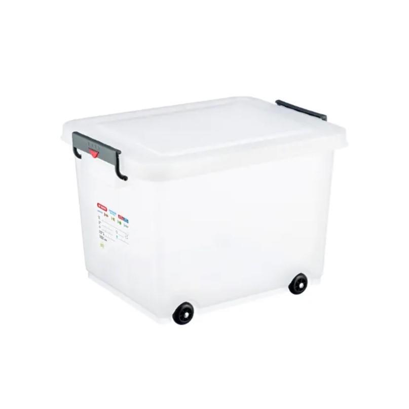 Posoda za shranjevanje in transport hrane s pokrovom, volumna 60L in izdelave iz kvalitetnega HDPE materiala.