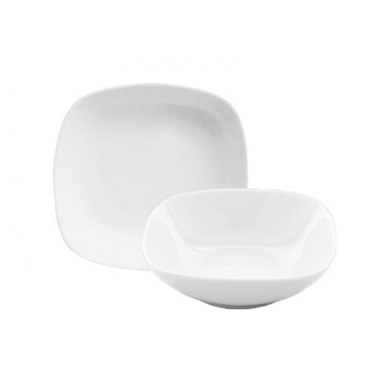 Set krožnikov, skled in skodelic iz linije Mimoza predstavlja krasen preplet med tradicionalno elegantnostjo bele barve in nekoliko bolj nevsakdanjo oglato obliko. Set, ki je zaznamovan s kvadrati ter ravnimi stranicami, bo poskrbel, da bo vaša postrežba nekoliko drugačna od tistih klasičnih.