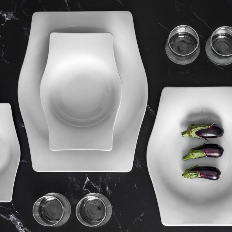 Linija krožnikov, skled in skodelic Osaka bo s svojo nekoliko drugačno obliko poskrbel, da se vaša postrežba začne z edinstveno izkušnjo - elegantna belina in poseben dizajn bosta poskrbela, da bodo ob vsaki postrežbi vaše kuharske kreacije prejele večinski del pozornosti, ki jo bo odlično dopolnjeval izgled porcelan izdelkov.