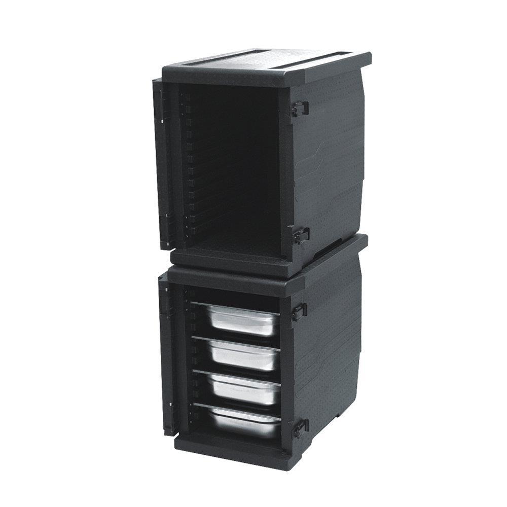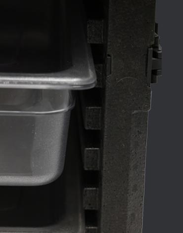 Izvedba z vratmi spredaj (Frontloader) omogoča enostavno nalaganje posod eno na drugo, z ustreznimi vodili pa poskrbi za njihovo stabilnost - kapaciteta: 12 vstavnih vodil za GN posode 1/1, 1/2 ali 1/3.